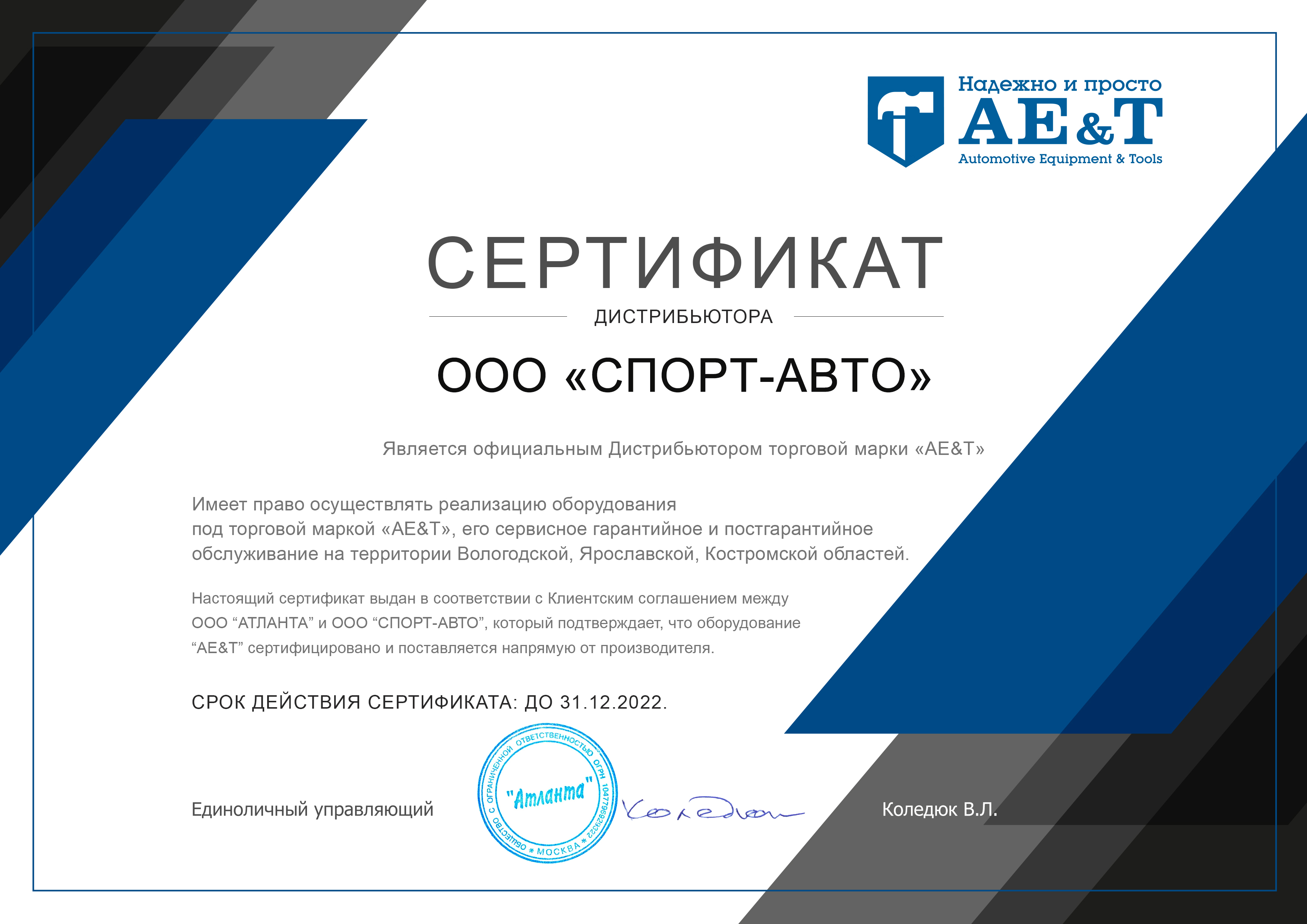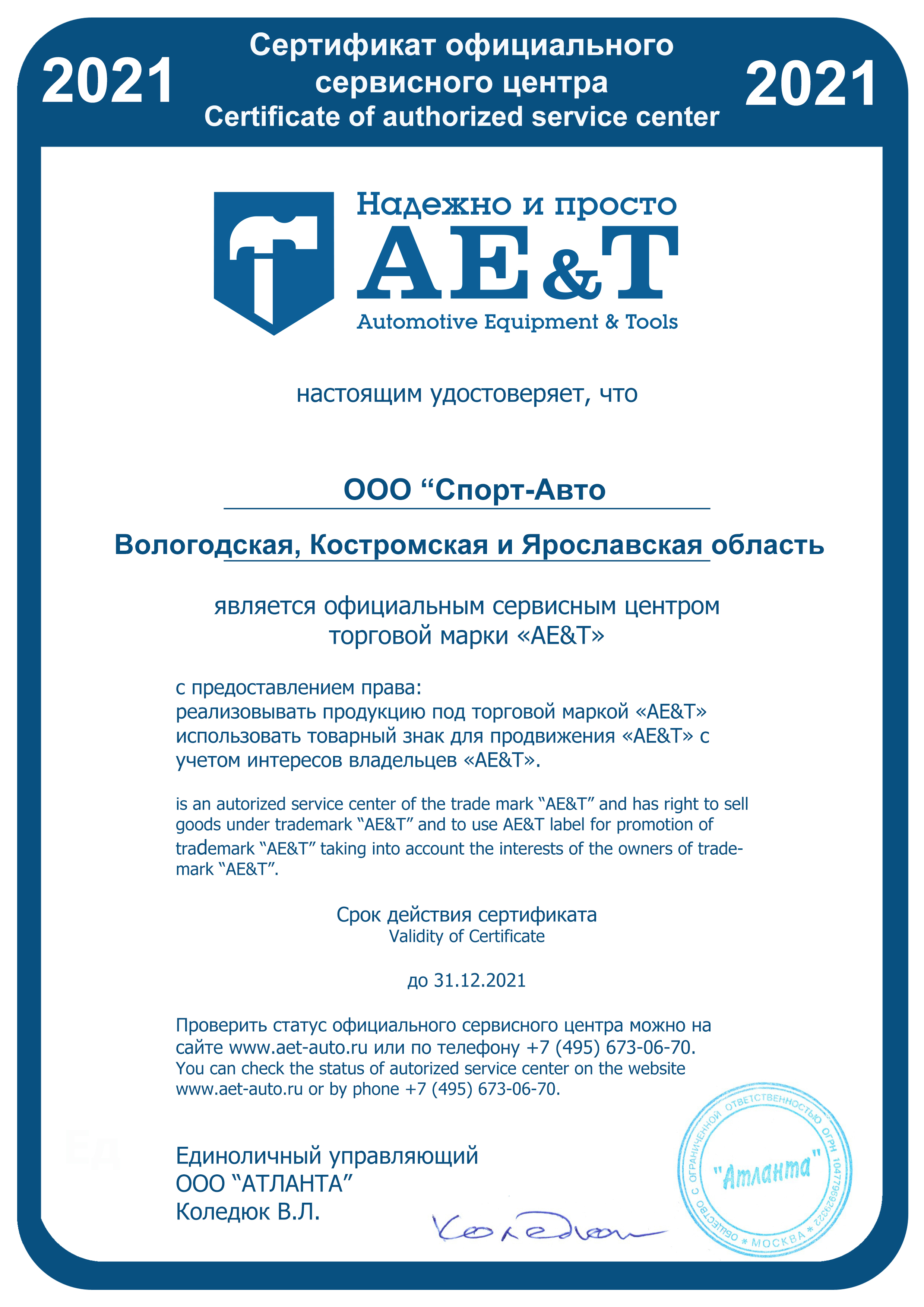 Услуги сервисного центра сертифицированы ведущими мировыми производителями (AE&T, Jonnesway, Ombra, Grass).